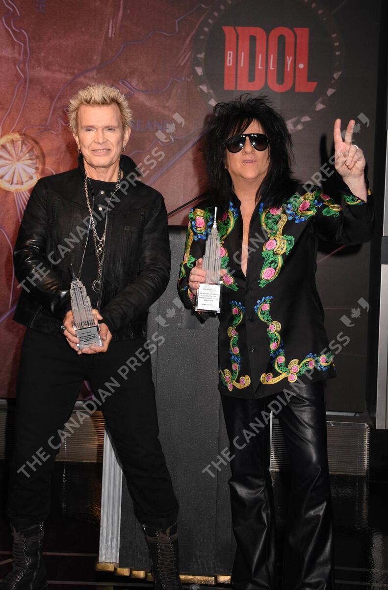 NEW YORK, NY - APRIL 30: Billy Idol and Steve Stevens pictured as Billy Idol and Steve Stevens light the Empire State Building to celebrate the 40th Anniversary of Billy Idols Rebel Yell on April 30, 2024 in New York City. Copyright: xmpi099x