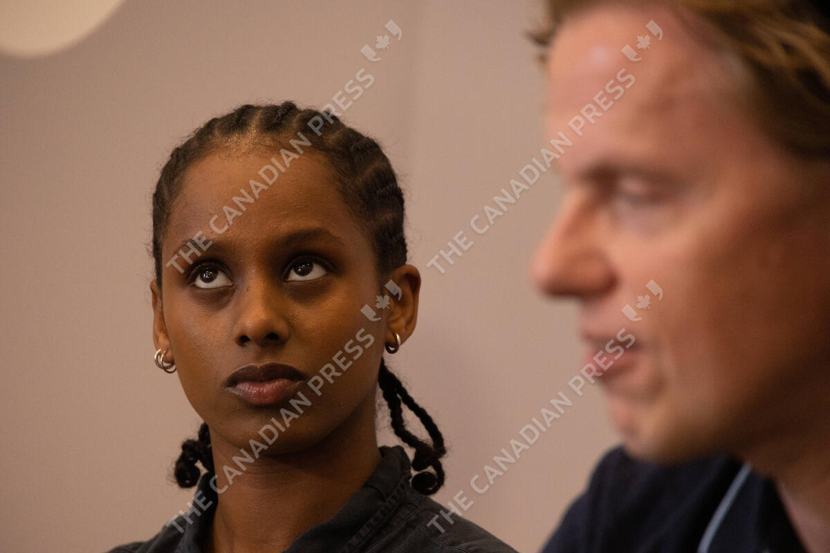 SABA L, who is representing Denmark at this year s Eurovision and Renowned Eurovision expert and the Danish Broadcasting Corporations Eurovision commentator, Ole Topholm R during a press briefing at The International Press Centre IPC ahead of the Malmö 2024 Eurovision Song Contest on April 30, 2024 Copenhagen IPC Denmark Copyright: xKristianxTuxenxLadegaardxBergx 2E6A2006