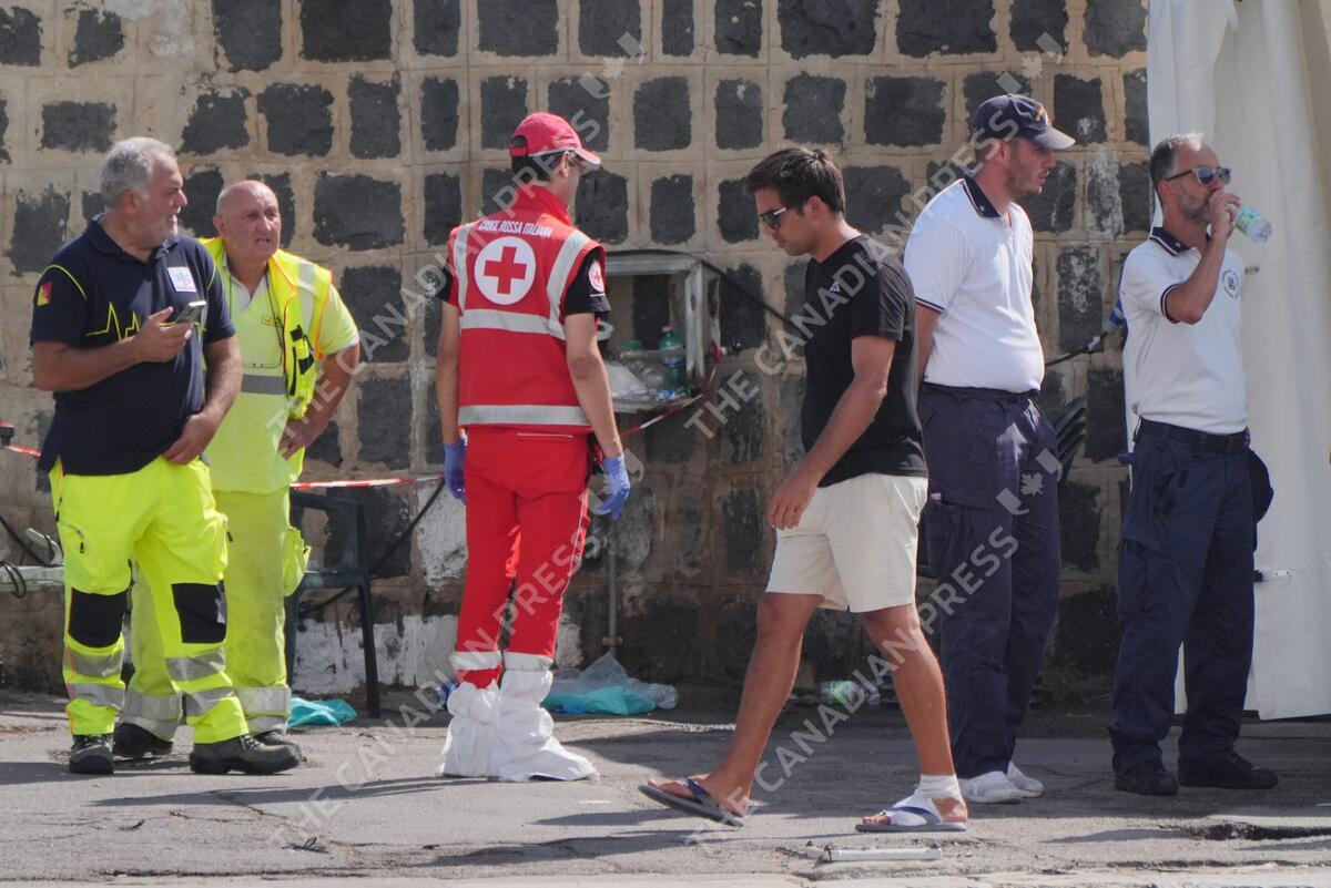 A man (name not known) visits members of the emergency services at the base for rescue operations in Porticello Harbour, Sicily, on the fourth day of the search for the six tourists missing after the luxury yacht sank in a storm on Monday whilst moored around half a mile off the Sicilian coast. The body of a fifth missing person has been recovered this morning, following the recovery of four others on Wednesday. Picture date: Thursday August 22, 2024.