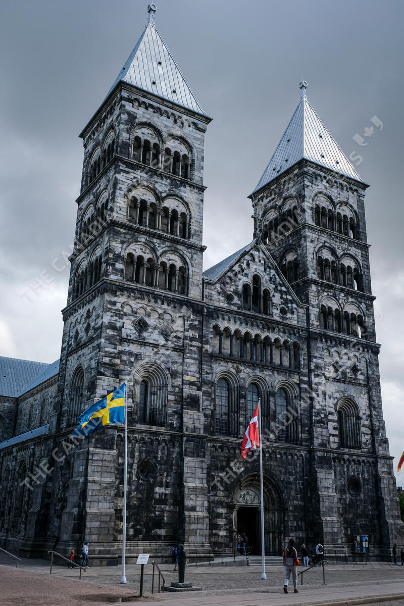 A Swedish flag flies in front of Lund Cathedral in Sweden, Monday, July 24, 2023. THE CANADIAN PRESS IMAGES/Jeff McIntosh