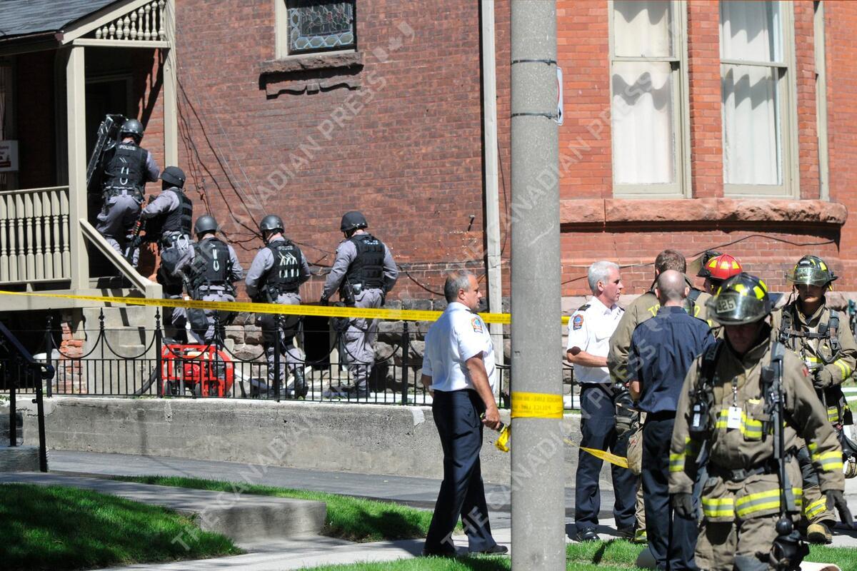 July 02/2010 -- Emergency task force and fire trucks respond to a fire on Huron Street where two people were pulled from the basement with third degree burns and injuries. The female victim passed away and the male victim is in critical condition, suffering third degree burns to 60 per cent of his body, said Toronto Police on July 2, 2010.......July 2, 2010 Photo by Sarah Dea/The Globe and Mail Digital Image